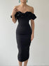 Midi Dress In A Ruffle Off The Shoulder Bodycon Style-Black